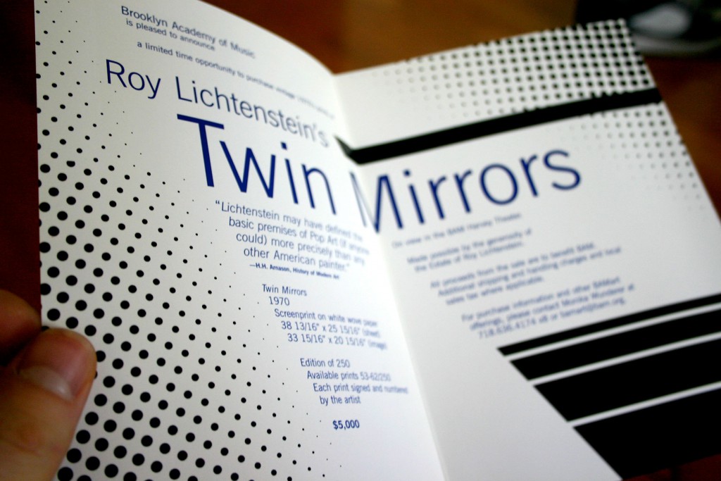 Special invites celebrating the re-release of some of Roy Lichtenstein’s posters in collaboration with BAM, utilizing full color images of the posters themselves.